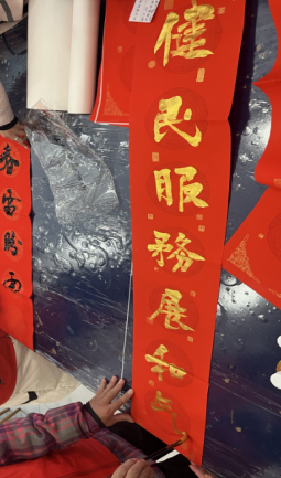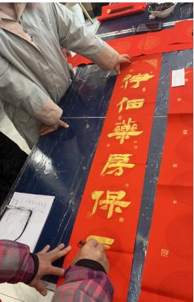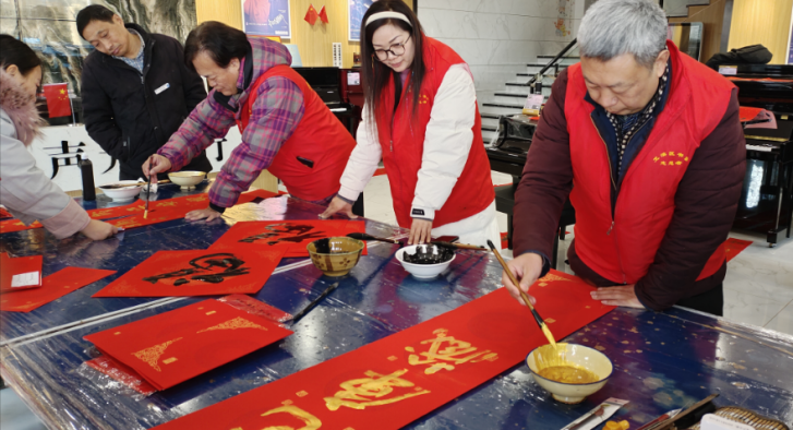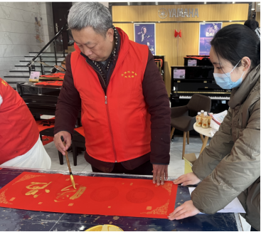 农工党河南省书画院理事名家名师现场挥毫泼墨,为党派企事业单位:伊佃健民药房的每家门店都精心书写年味浓浓、寓意吉祥、文化底蕴满满的春联。